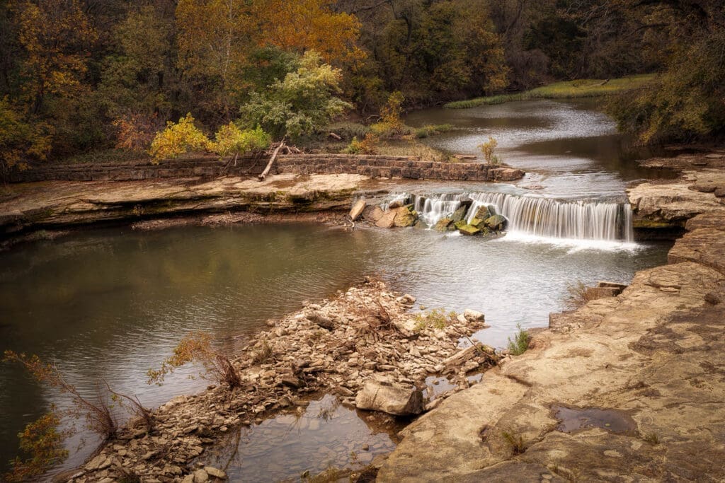 This region of Kansas contains several waterfalls like the one shown above near Elk Falls. Most of the waterfalls in Kansas flow seasonally with the best time to catch them running with strong flows of water is in the spring or summer after heavy rains. Heavy winter snows can also sometimes provide good photo opportunities to see the waterfalls running.