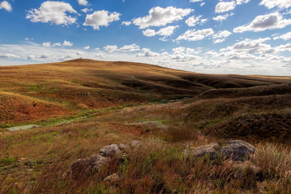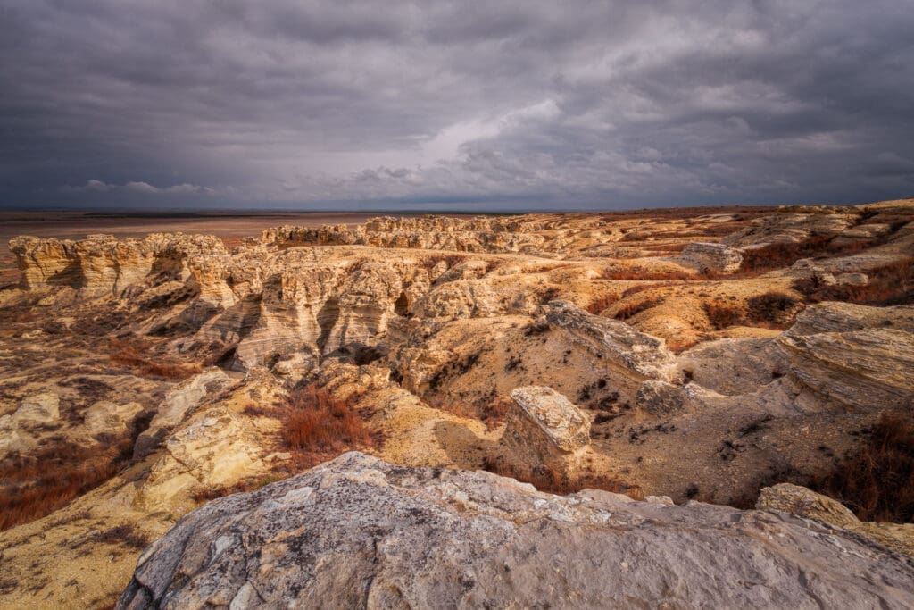 The Smoky Hills is a fascinating area of Kansas with rocks deposited 66 to 145 million years ago and record an interesting time of geological history. During the Cretaceous Period, most of Kansas was under water. The western edge of the Smoky Hills contains chalk beds which were formed from the remains of tiny sea creatures. It is pretty interesting to photograph these rock formations standing on essentially the floor of an ancient ocean. You can view these rock formations at Monument Rocks, Castle Rock, and the newest state park in Kansas, Little Jerusalem Badlands. The Smoky Hills is a large region with various different rock formations present. Some other areas in this part of the state to visit are the hiking trails at Kanopolis Lake , Mushroom Rock State Park, and Rock City Park.