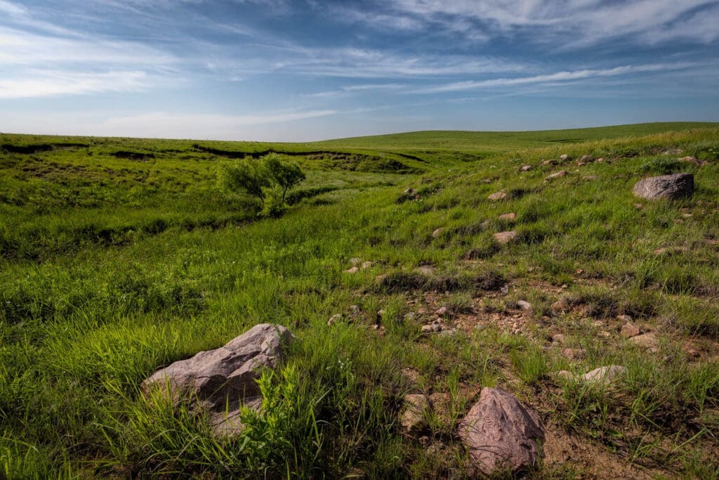 This last photo is from the Glaciated Region in the northeast corner of Kansas. This is another region that I didn’t know much about until working on this project. During the Pleistocene Epoch, the northeast corner of Kansas was covered in ice sheets, with the ice reaching as far as Topeka and Lawrence around 600,000 years ago with the ice reaching up to 500 feet thick. This is another place that is fascinating to photograph thinking about being under 500 feet of ice. The rocks shown in the photo above are glacial erratics and were carried down to Kansas by the ice from Minnesota, South Dakota, and Iowa. These rocks are composed of sandstone over a billion years old.