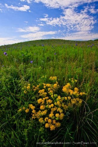We arrived just at sunrise (after getting up at 3:30 am!!). The wildflowers where fantastic, but unfortunately so was the wind. Even so, it was a great morning and in most cases I was able to find a way to shoot even with the wind blowing things around. A number of different wildflowers where blooming including daisy fleabane, deptford pink, cat’s claw sensitive briar, common spiderwort, lead plant, woolly verbena, and butterfly milkweed. The butterfly milkweed was fascinating to me…it was the wrong color! Well at least wrong to what I normally see. In the Flint Hills near where I live, the flowers are orange to red, but down around Maxwell they were a very distinct yellow.