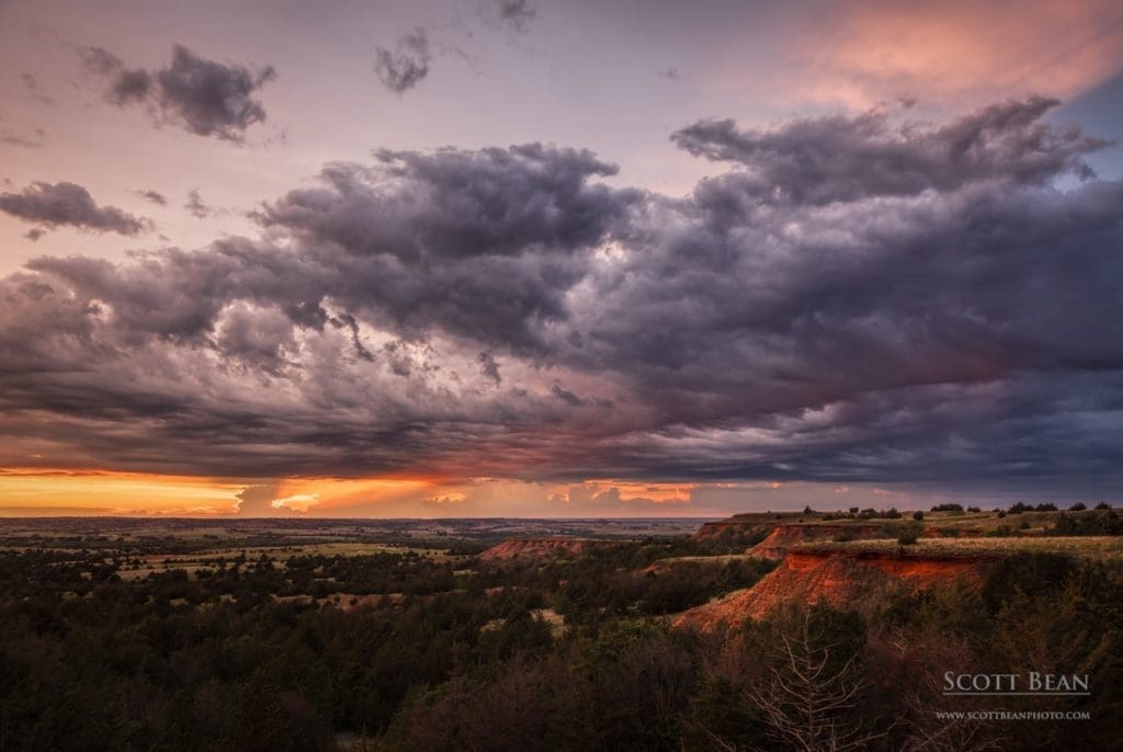 In my last post, I wrote about a recent afternoon spent photographing landscapes and bison at the Big Basin area of Kansas. After photographing the landscapes at Big Basin for a few hours, my friend Mike and I headed back to the Gyp Hills area around Medicine Lodge for sunset. I’ve really enjoyed past trips to this area of Kansas and was looking forward to another chance to photograph the unique landscapes there.